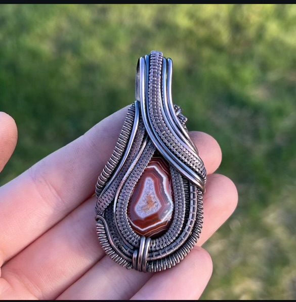 Brianna moved to Perham in 2014 and graduated from Perham High school in 2015. She traveled around after high school for college and ended up in Duluth for about 5 years. While living there she got into making wire wrapped pendants with Lake Superior agates. She began learning by trial and error and as time went on, kept building her skills. She learned how to cab and polish her own stones to wrap, yet eventually wanted to get into making other kinds of jewelry and did some research.
